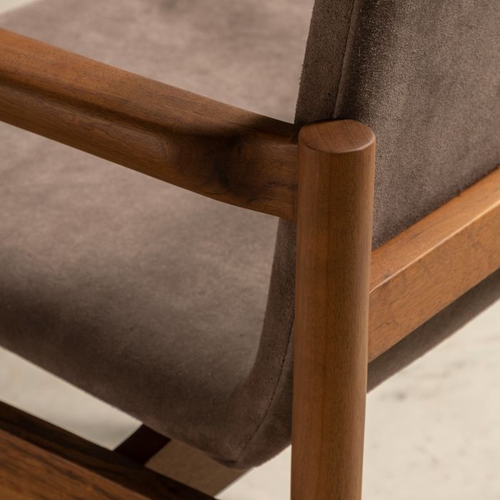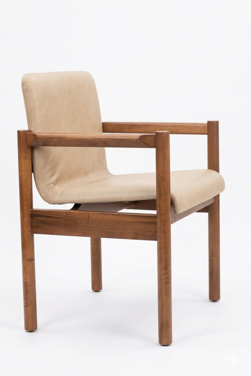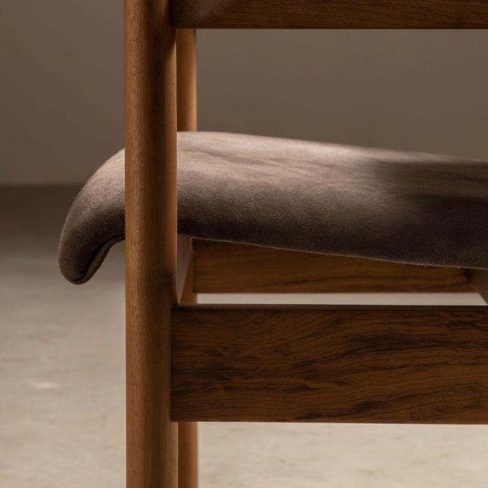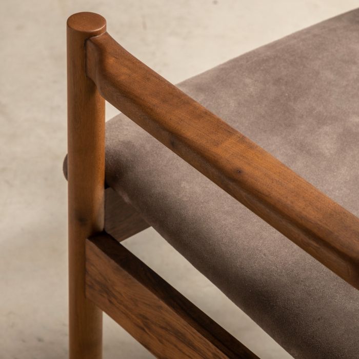 Com estrutura em madeira maciça e proporções bem resolvidas, a peça se destaca pela leveza visual e pela honestidade construtiva.