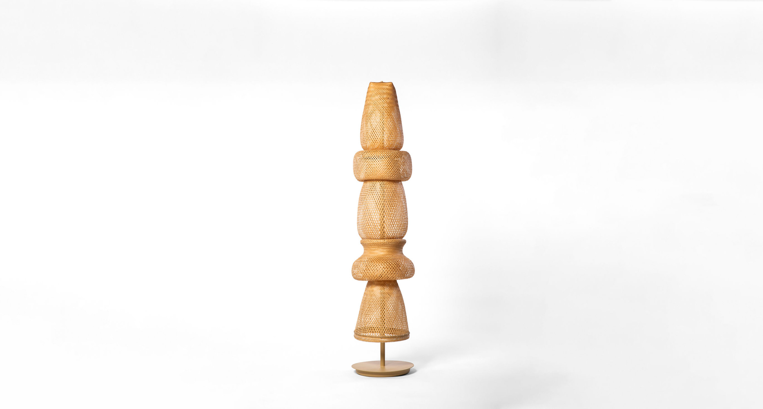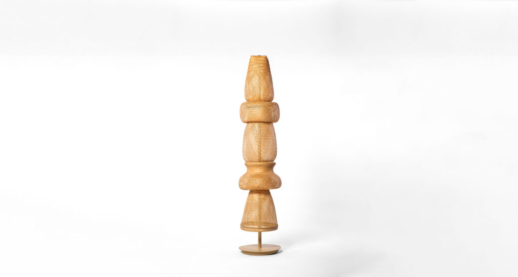 A luminária propõe a associação de diversos formatos de cestos utilitários tradicionais Baniwas com uma fonte luminosa e suporte que buscam unir a tecnologia da indústria brasileira à sabedoria vernácular e artesanal.